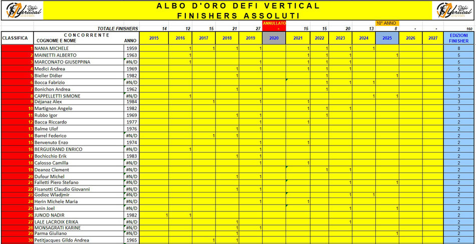 Questi gli/le atleti/e che hanno concluso le edizioni passate del Défi Vertical